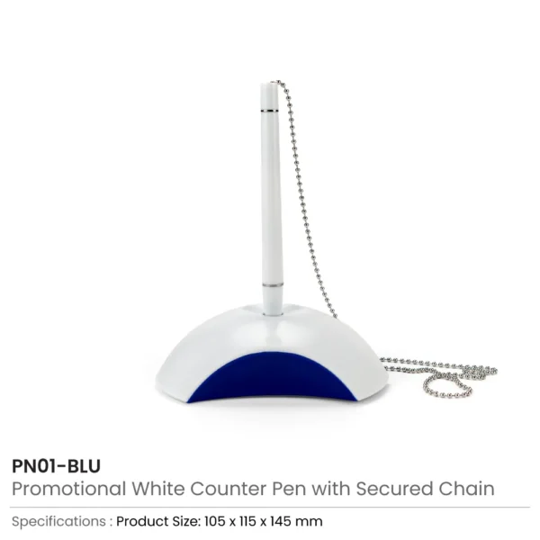 Counter Pen with Base Holder and Secured Chain – Blue Ink