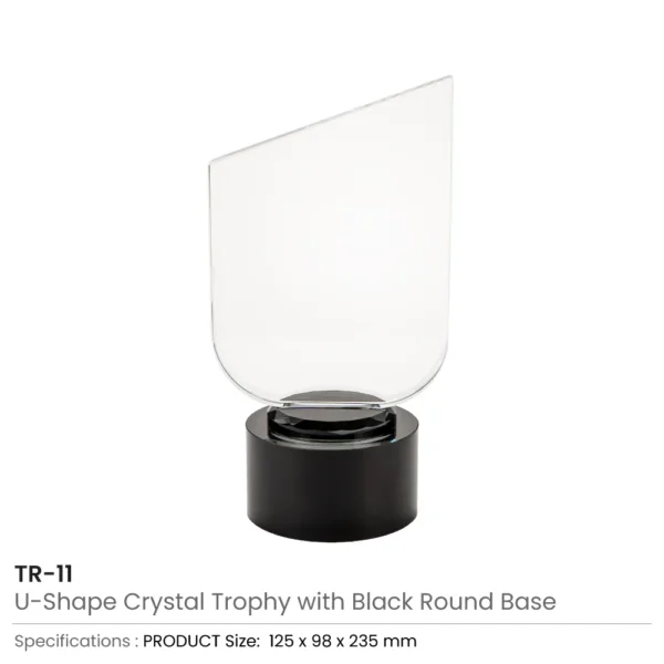 Celebrate achievements with elegance using this premium Crystal Trophy featuring a thick, clear glass U-shaped body and a sturdy round black base. Designed for prestige and durability, it is ideal for corporate awards, recognition ceremonies, sports events, and milestone celebrations. The crystal-clear finish offers excellent clarity for high-quality engraving and branding.